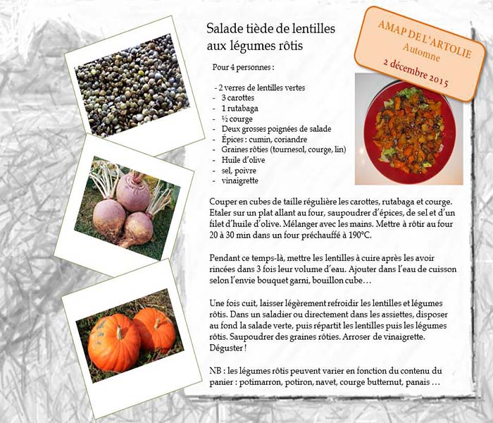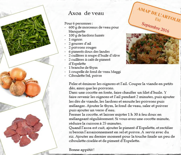 L'association AMAP de l'Artolie, soucieuse de développer des pratiques agricoles respectueuses de l'environnement, a mis en place l'AMAP de l'Artolie en 2007. Nous avons depuis le début de l’année le plaisir de travailler avec la cantine de l'école primaire de Paillet. Suite à la décision du Grenelle d'instaurer dans les écoles une nourriture saine et biologique, la mairie a fait le choix de s'approvisionner localement. Nous nous en réjouissons.